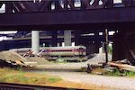 Boston Engine Terminal (or BET, as everyone refers to it) is the MBTA's northside commuter rail maintenance facility. It handles all the repair work for the northside fleet, and does much of the work for the southside fleet as well. Equipment from the southside is transferred to BET every night from Readville via Beacon Park and CSX's Grand Junction Branch through Cambridge. BET can perform most of the maintenance needed by the commuter rail fleet, with the exception of overhauls, body work, and other heavy maintenance, which are handled by outside contractors. BET sits inside a large wye. To the south is the Fitchburg Line; to the east and north, the Lowell, Haverhill, Newburyport and Rockport lines; and to the west, the Grand Junction Branch (which continues up to Chelsea) and several tracks used by the T and Pan Am (the T uses a pair to store maintenance of way (MOW) equipment, Pan Am uses another pair for staging BO-1, the local switcher). The current BET was built in the mid-1990s to replace a steam-era Boston & Maine facility. Between the building and the Fitchburg Line is Yard 14, used for storing out-of-service equipment and off-duty trainsets, and overlooked by Tower H. Sixteen tracks run into the building, with all but the last three running all the way through. Tracks 1-3 (on the south end of the buidling) are the Service & Inspection (S&I) tracks, which include the wash racks. Tracks 4 and 5 are the Preventative Maintenance (PM) tracks. The S&I and PM tracks handle cleaning and light maintenance. Track 6 is the wheel machine track, which trues the wheels on coaches and locomotives. Tracks 7-10 are the Diesel House, which handles locomotives. Tracks 11-13 are the Coach House, which handles coaches. Tracks 14-16 are the backshop, and are the only ones that don't run through the building. The backshop handles heavier repairs, such as truck/wheel changeouts, prime mover changeouts, and so on. The northern-most part of the building has the parts warehouse and offices for the T and Massachusetts Bay Commuter Rail. I worked for MBCR several summers starting in 2004 and ending in 2007. During that time, I was able to take photographs all over the facility. |