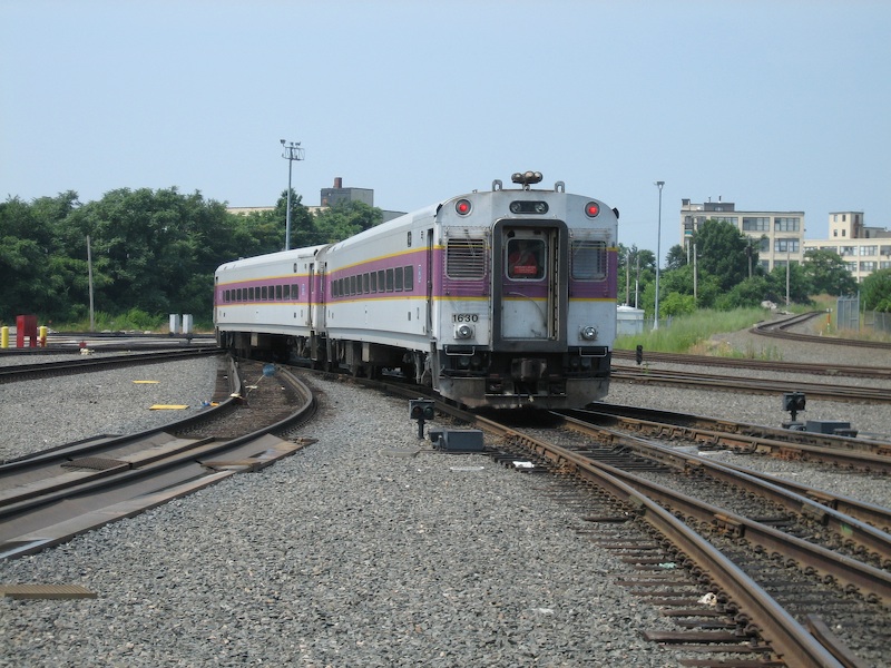 Control car 1630 leads a train onto one of the PM tracks on August 11, 2005.