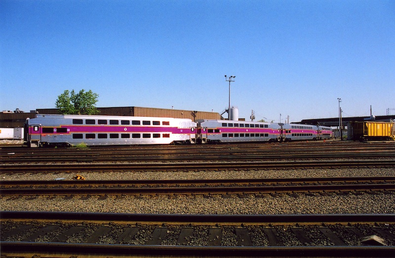 Caption: On June 23, 2005 I got to photograph cars 904-7, which CSX delivered at 5:30 PM the previous night. The 900s are Class BTC-4C, have 178 seats, and have special ductwork at the ends so that they can be coupled right behind a locomotive and not draw the exhaust into their HVAC systems.