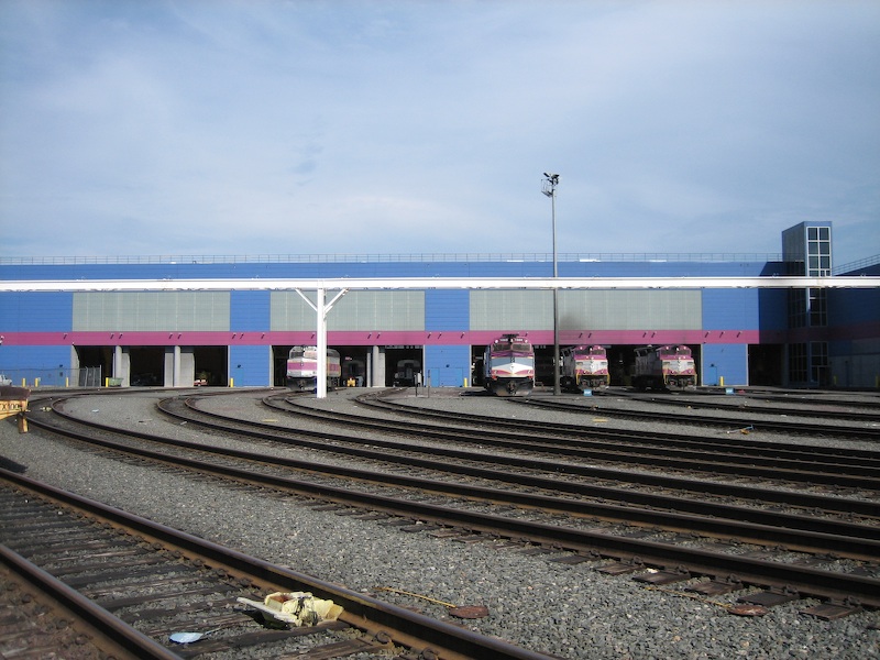 From left: the two-track backshop (Track 16 was a stub-end siding until fall 2006), the 3-track Coach House, the 4-track Diesel House, and one track to the wheel machine. The Backshop also has a door for trucks to back in.