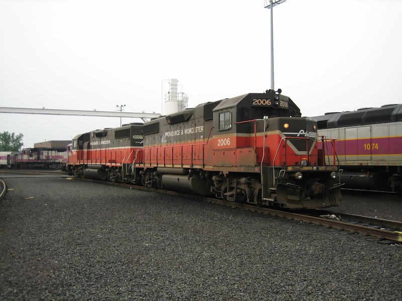 Caption: On July 11 Providence & Worcester GP38's 2006 and 2007 arrived at BET. The T borrowed them to operate a rail train on the Lowell line due to a shortage of power. The train was to lay continuous welded rail beside the existing tracks between North Billerica and Wilmington and north of Winchester.