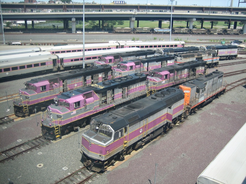 Caption: A view of the tracks on the east side of BET taken from a stairwell. Most equipment on this side of the building is out of service for extended periods of time pending repairs or is waiting to be scrapped. Compare 1005 with how it looks now. (July 19, 2006)