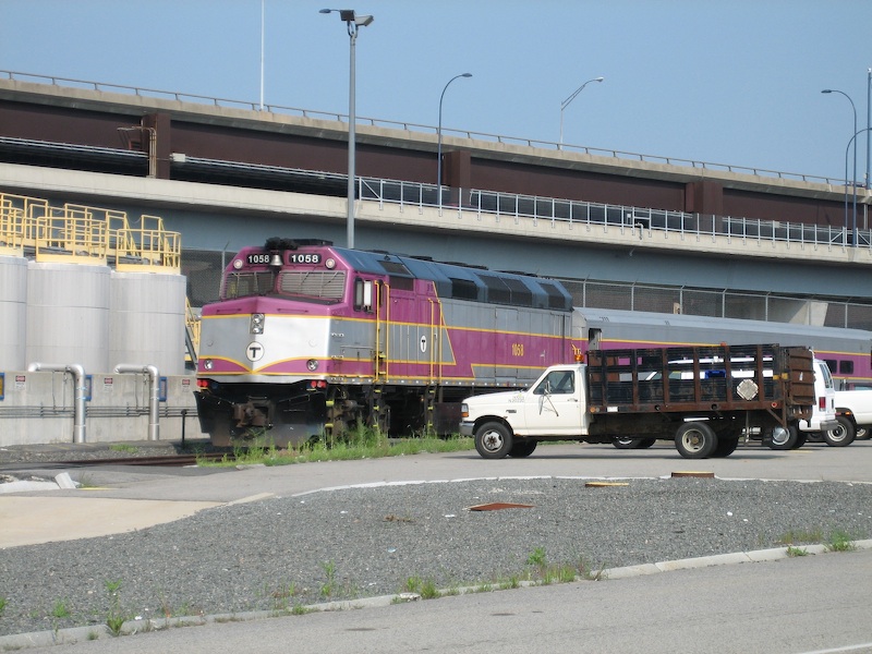F40PH-2C 1058 and a train idling on the Valley Track, which snakes between BET and the Lowell Line. (July 26, 2006)