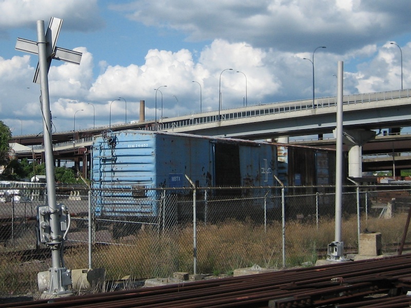 The T bought some "new" boxcars to use for storage. They're still in Boston & Maine paint. (August 8, 2006)