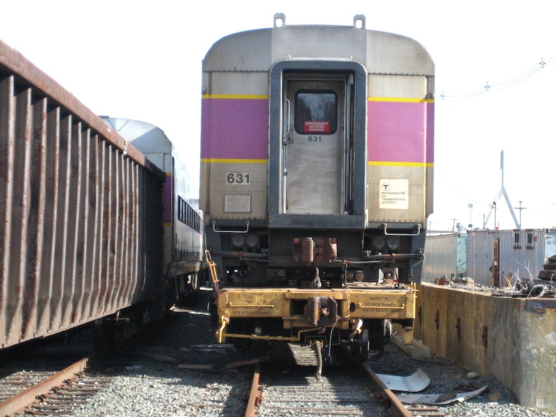 631 was one of several coaches loaded onto flatcars and shipped to New York for repairs BET couldn't handle, mainly body work such as damaged traps. (February 9, 2007)