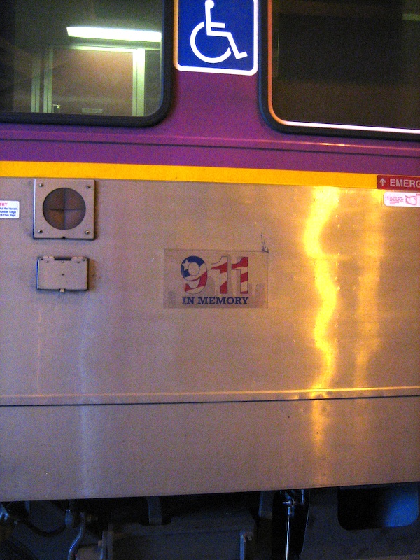 Coach 911 has special commemorative number stickers. This version, on the side, has the New York City skyline in the background. (May 31, 2007)