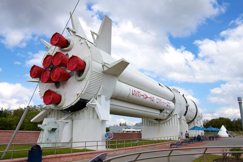 Caption: Saturn IB rocket. Serial number SA-209, it was assembled for use on rescue missions for the Skylab 4 and Apollo-Soyuz missions, if such a launch had been required. The engines are mockups installed in 1994, as the originals rusted out. (March 15, 2011)