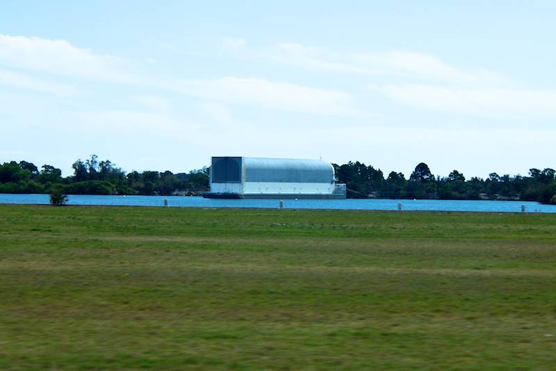 Caption: This barge was used for shipping external fuel tanks for the space shuttle from the factory in New Orleans to Cape Canaveral. Presumably it is moored in the lagoon by the VAB because it won't be needed again for several years, if ever. (March 15, 2011)