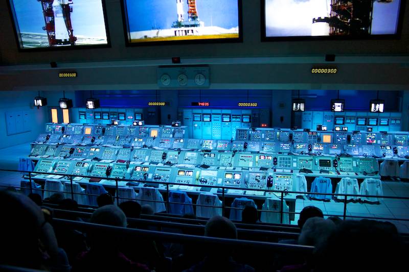 One of the firing rooms from the Apollo era was dismantled and moved to the Apollo/Saturn V Center, where it sits in the front of a theater that replays the launch of Apollo 8 (the first mission to go into lunar orbit). (March 15, 2011)