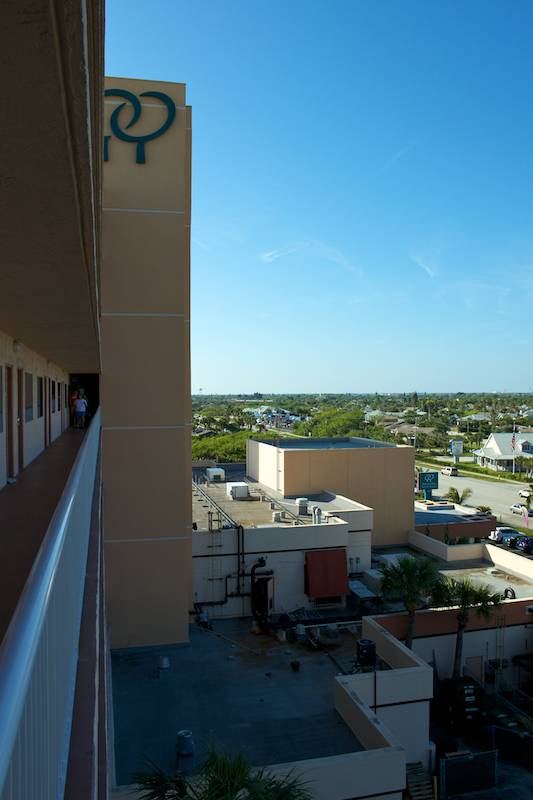 The corridors leading to the rooms are all open-air. (March 14, 2011)