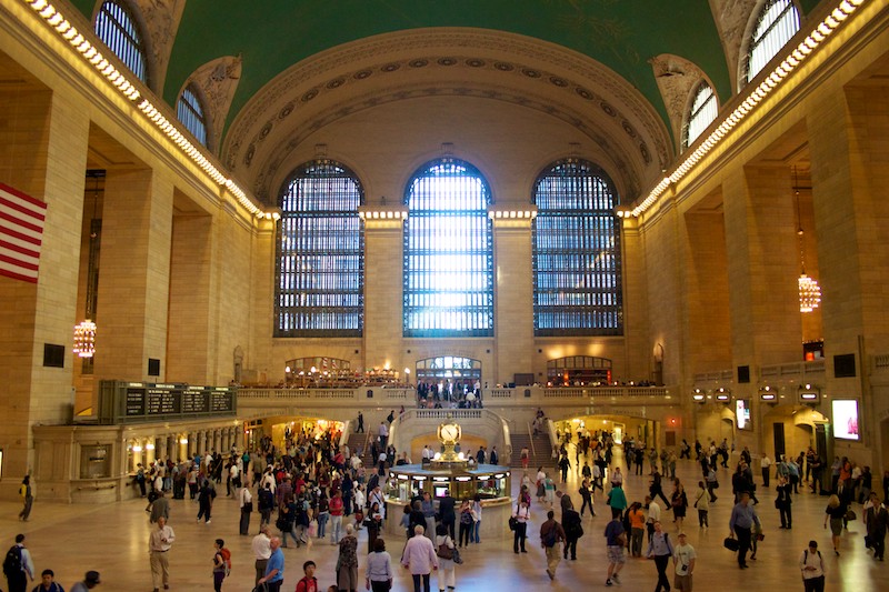 Caption: West end of the main concourse. The station was cleverly built with the concourse located where 43rd Street once went, allowing plenty of light through the windows. The station was also designed so that 43rd Street could be routed through the concourse if the city demanded it. (September 14, 2010)
