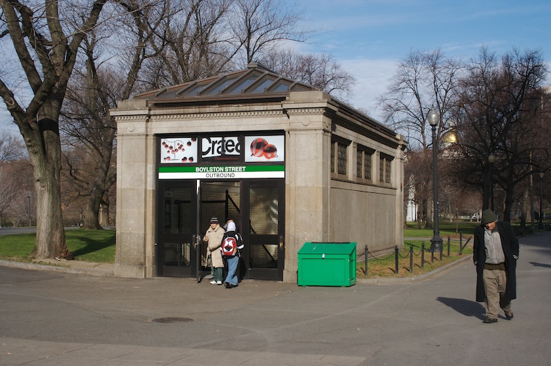 The inbound headhouse at Boylston, located on the edge of the Boston Common at the corner of Tremont and Boylston Streets. (December 22, 2006)