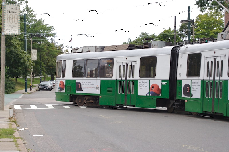 3667 turning into the loop. The Arborway line used to continue straight here. (August 20, 2007)