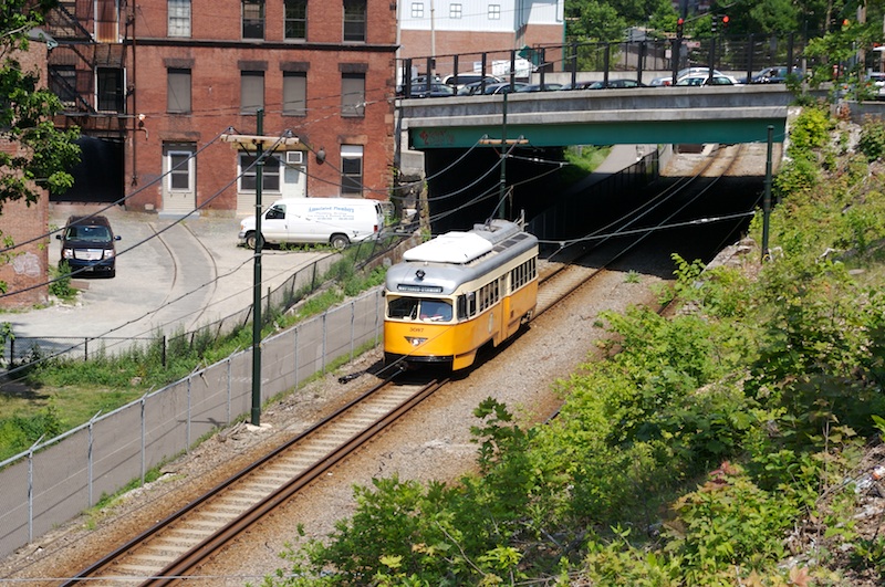3087 heads outbound just after leaving Milton and passing under the Adams St bridge. (June 8, 2009)