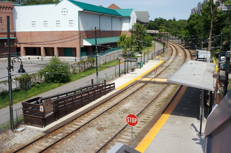 Overview of Milton Station from the top of the stairs up to Adams St. (June 8, 2009)