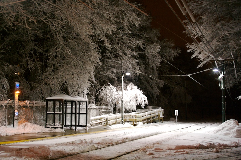 Inbound platform of Capen Street at night. (January 14, 2008)