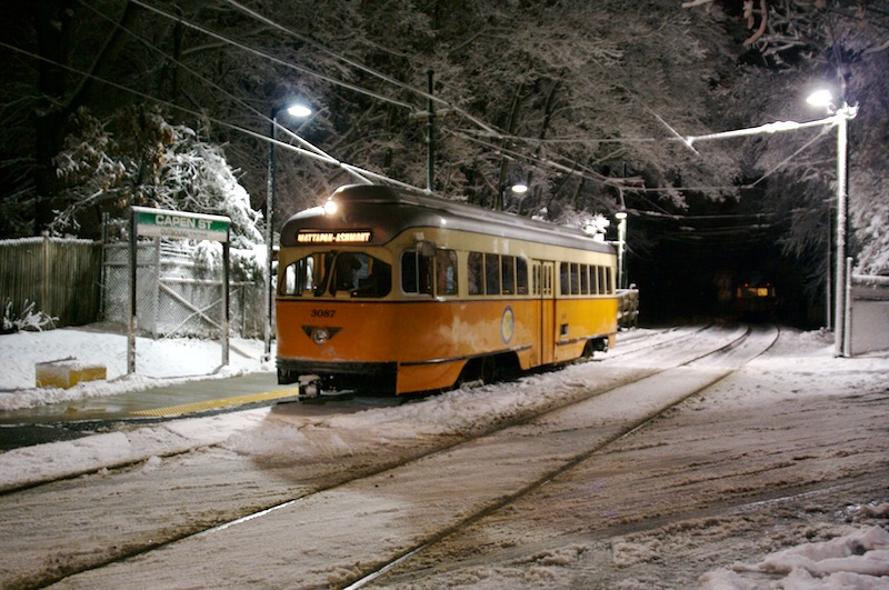 3087 outbound at Capen Street at night. (January 14, 2008)