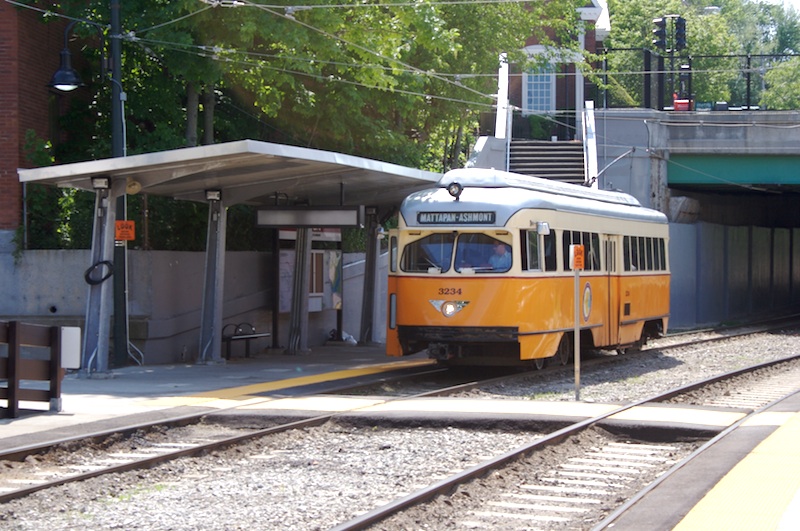 3234 picks up a passenger at Milton. (June 1, 2008)