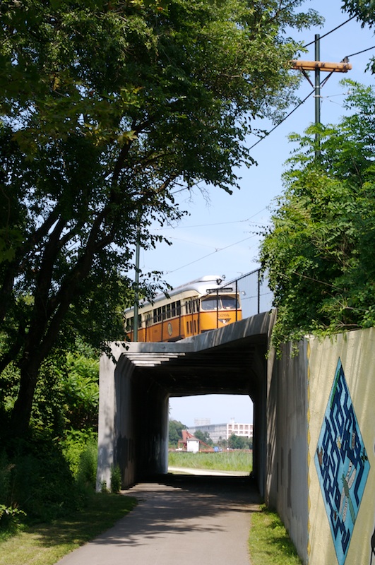 3268 heads outbound across the rail trail. (July 17, 2008)