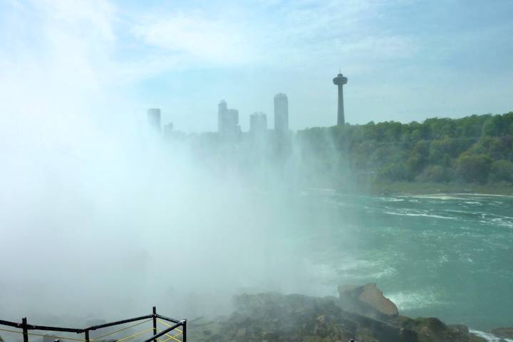 Looking towards Niagara Falls, ON through the mist from the American Falls. (May 25, 2011)