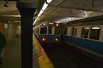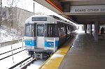 Most service on the Blue Line is now provided by a fleet of 94 #5 East Boston Tunnel cars in the 0700 series, built by Siemens. 0704 and 0705 were the first to be delivered, and were originally based at the Orange Line's Wellington Shops, where they had access to the otherwise unused third track between there and Community College (now dubbed the "test track"). The first cars of this fleet, 0708-0711, entered service on February 20, 2008. Twenty-two #4 EBT cars (in the 0600 series) built by Hawker-Siddeley in 1978-80 are still around, but they are used only in rush hour service. Strangely, the T refuses to run them in 6-car trains. The 0600s are known as Bluebelles, and are largely identical to the #12 cars on the Orange Line. |