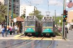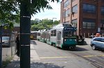 | The Cleveland Circle branch, also known as the Beacon Street line, is one of the oldest trolley lines in the US, dating to 1889. Running down the median of Beacon Street, it is one of the more scenic lines in the Boston area, with the buildings along the street having lots of interesting architecture. The line retains many features of early trolley lines, such as closely spaced stops (many are less than a block apart, and there are places where you can look down the tracks and see two or three stations) and frequent road crossings. | |||