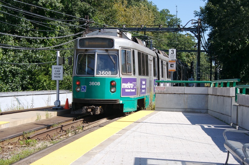 3608 brings up the rear of a train that just left Riverside to head into Boston. (September 6, 2009)