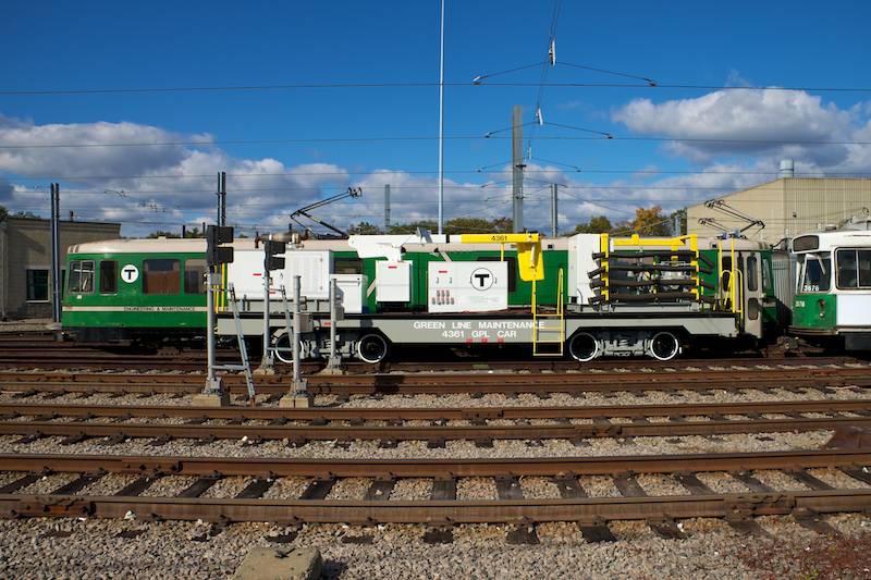 Most of 3453's side was blocked by 4361, a generator/pump/lift car. (October 25, 2011)
