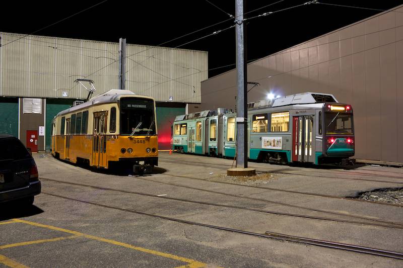 3448 and 3805 rest outside the shop at Riverside after midnight. (October 26, 2011)