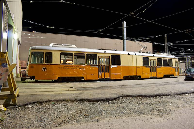 Side view of 3448 at night. Wouldn't it be interesting if all the Green Line cars were still painted in traction orange? (October 26, 2011)