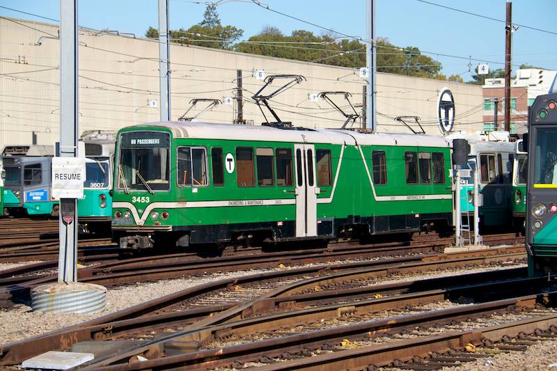 Caption: Sometime over the weekend 4361 was moved to Reservoir, leaving the full side of 3453 visible. Annoyingly, when I arrived to take some daytime photos of the latter, a deuce laid up after rush hour was sitting on the south end of track 1, blocking any shots except for this 3/4 view. (November 2, 2011)