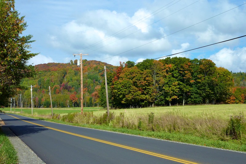 View of the fall foliage across Craftsbury Road from the lake. (October 4, 2009)