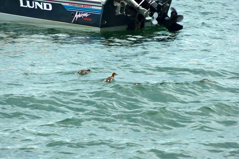 Some molting ducklings racing each other past the dock. (July 4, 2010)