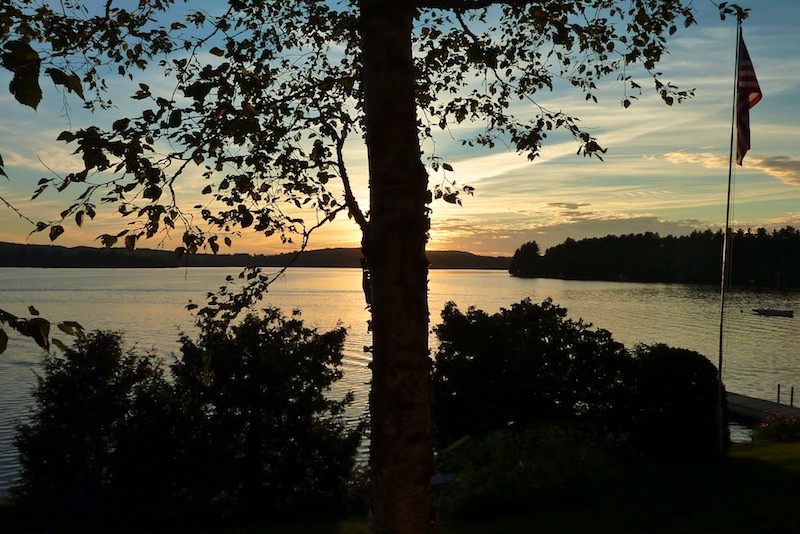 The setting sun silhouettes the tree in front of the cottage. (July 4, 2010)