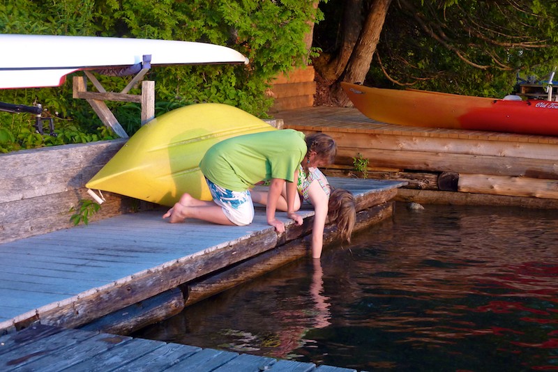 My cousin Naomi and her friend Jenna hunting for crayfish off our dock. (July 4, 2010)