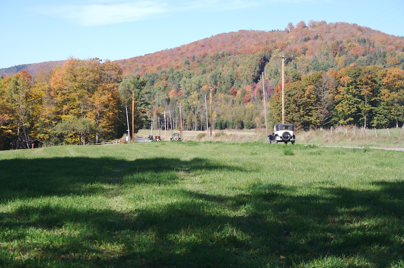 Another view of the hills surrounding the lake. The four antique cars on the road belong to a group of local car collectors. (October 7, 2007)