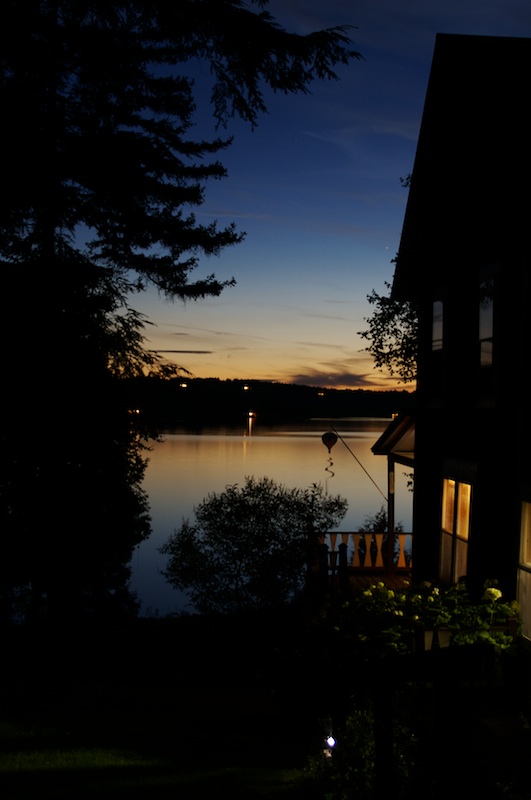 A late sunset viewed between our cottage and some trees. (August 23, 2008)