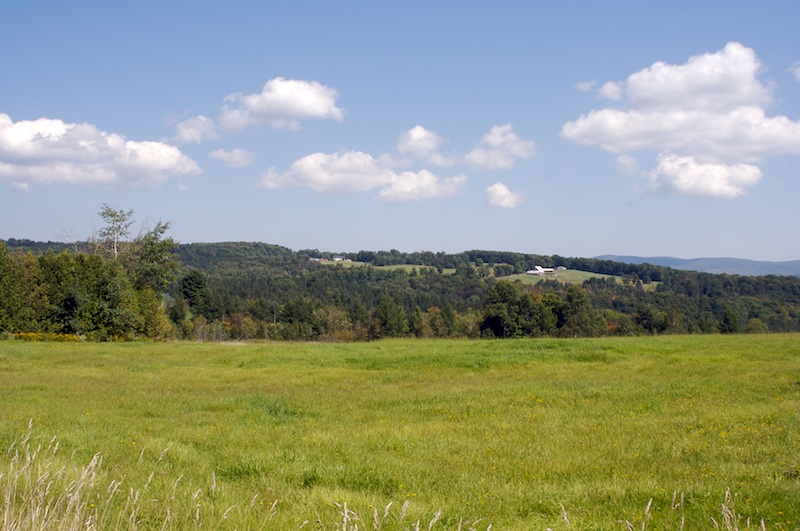 Looking east from Breezy Ave towards a distant hillside. (August 24, 2008)