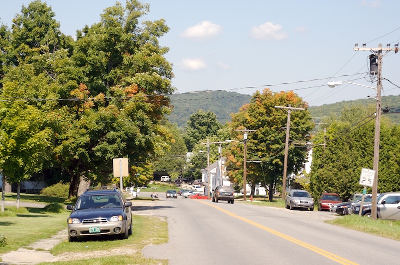 Looking down Breezy Ave into downtown Greensboro. Some of the trees were already turning colors, apparently from all the rain Greensboro has had this summer. (August 24, 2008)
