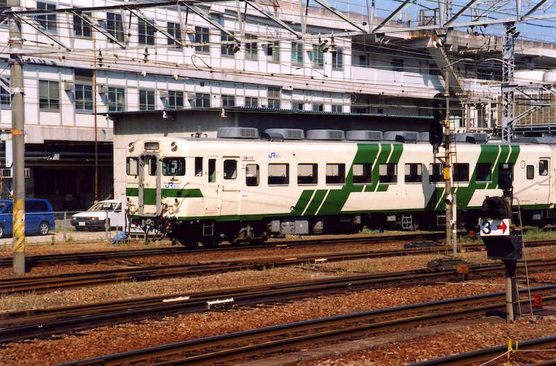 A set of westbound DMUs arrives at Hiroshima-eki. This train terminated here and later started another trip east.