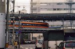 | The Kinki Nippon Railway, better known as the Kintetsu Railway, is a regional railroad that operates south of Kyoto. It is the largest private railroad in Japan, with 594 Km of mostly 1435mm gauge (standard gauge) track (it has a few narrow-gauge lines as well). During my class trip to Japan we rode the line from Kyoto to Nara to visit Todaiji Temple. Here are a few pictures of the railroad's trains, mostly in Kyoto. | ||