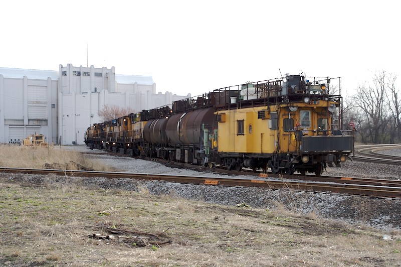 Acting on a tip I got from another railfan, I found this Loram rail grinder train parked on an industrial lead near the intersection of 1st and Sycamore in Terre Haute on March 19, 2006.