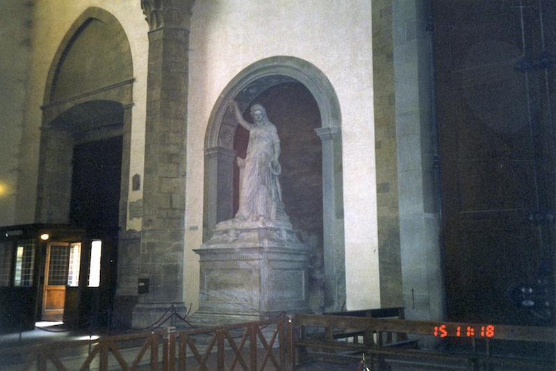 This statue in Santa Croce, The Liberty of Poetry, was the inspiration for the Statue of Liberty in NYC. (March 15, 1999)