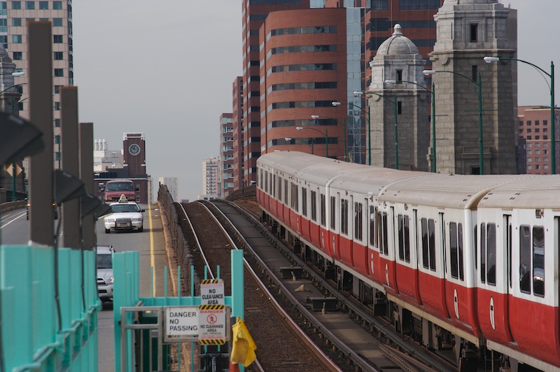 Same train as before, starting across the Longfellow Bridge. (December 22, 2006)