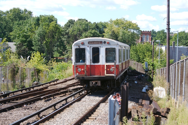 01607 brings up the rear of an outbound train that just left Fields Corner. (September 1, 2009)