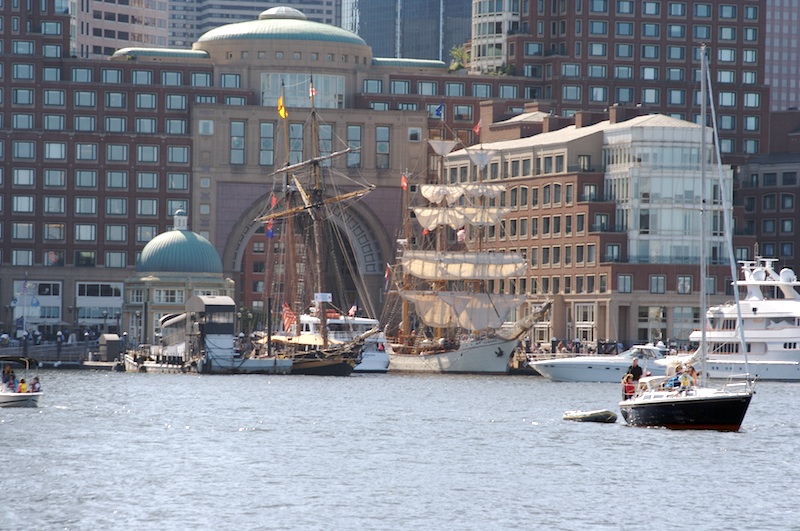 Rowes Wharf viewed from the Fan Pier, with the Boston Harbor Hotel looming behind the