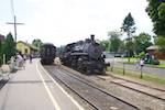 The original Valley Railroad was chartered in 1868, and completed from Hartford to Saybrook Point in 1871. In 1880 it came under the control of the Hartford & Connecticut Valley Railroad, which in turn came under the control of the New York, New Haven & Hartford in 1882. The New Haven ceased service over the line in 1968. In 1970 a new Valley Railroad leased part of the line from the state of Connecticut (which had acquired it from the Penn Central), and has been running trains out of Essex, CT since 1971. Valley RR operates several different trains. The regular train is known as the Essex Steam Train & Riverboat, and operates several times a day throughout the summer. It connects with a riverboat at Deep River, offering passengers an optional cruise up the Connecticut River. On weekends it also runs the Essex Clipper Dinner Train. Most of the equipment is quite old. There are currently two operating steam locomotives, both built by Alco in the 1920s. Most of the passenger cars were built by Pullman in the 1910s and '20s for the Delaware, Lackawanna & Western. A pair of General Electric 80-ton diesel-electrics rounds out the roster of operating equipment. Of particular interest to me is that 4 of the coaches were previously owned by the Lamoille Valley Railroad, which operated near my family's summer cottage in Vermont. Two are still lettered for the LVRR, but sadly do not appear to have been used for a long time. |