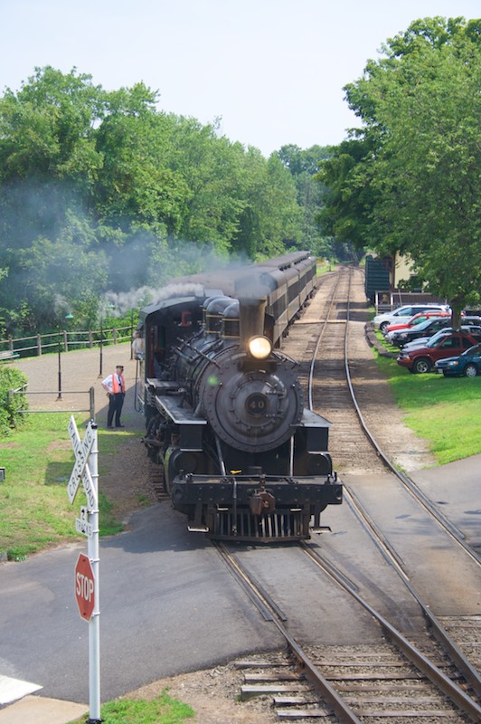 #40 partially blocks the crossing while being uncoupled from the train. (July 24, 2010)