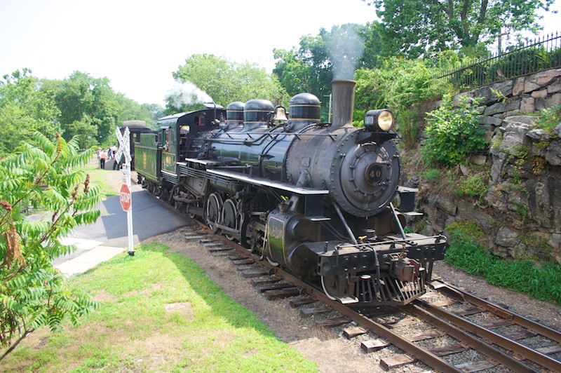 #40 heading back over the switch before running around the train. (July 24, 2010)