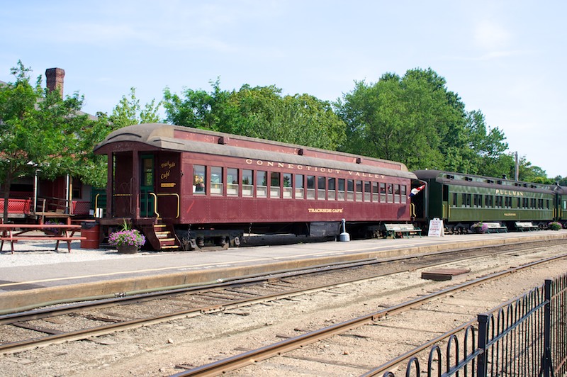Coach #500, built by Pullman in 1914 as DL&W #565, is now set up as the Trackside Cafe, offering a small selection of bottled drinks and sandwiches. (July 24, 2010)